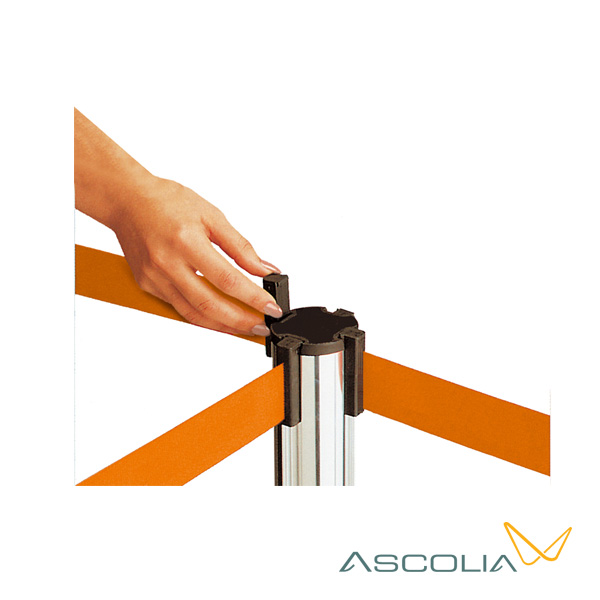 Sistema con cintas extensibles o Cintas de 2 o 3,7 metros con sistema de autofrenado (gran variedad de colores) o 3 acabados: cromados, latón y acero inoxidable o Peana lastrada de gran diámetro para una excelente estabilidad