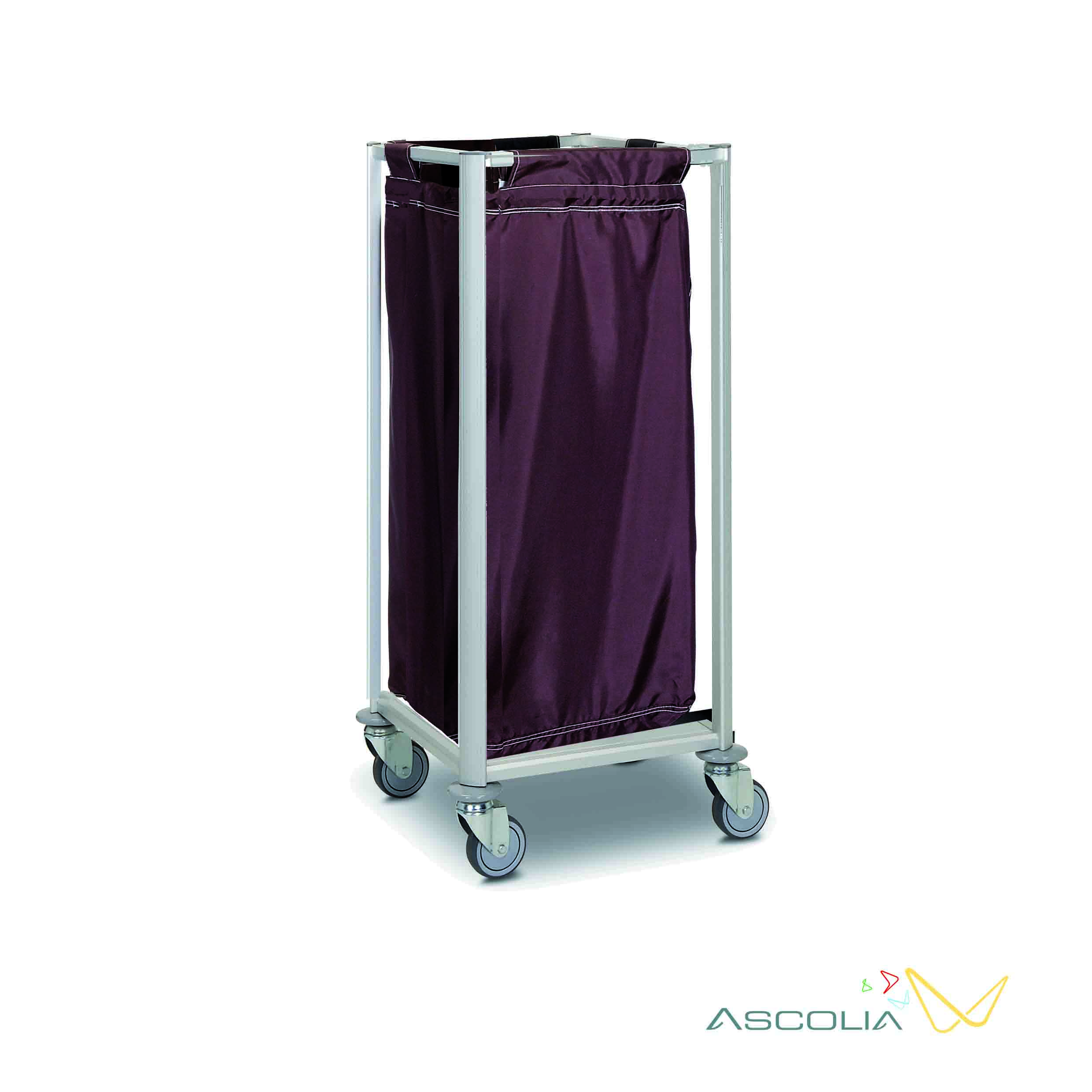 Carro para el traslado de ropa sucia , acoplable al Atlas Equipamiento de serie o Bastidor de aluminio anodizado, ligero, sólido y manejable o Para usar con bolsa de 160 litros o Paragolpes anulares de protección o 4 ruedas pivotantes Ø 125 mm