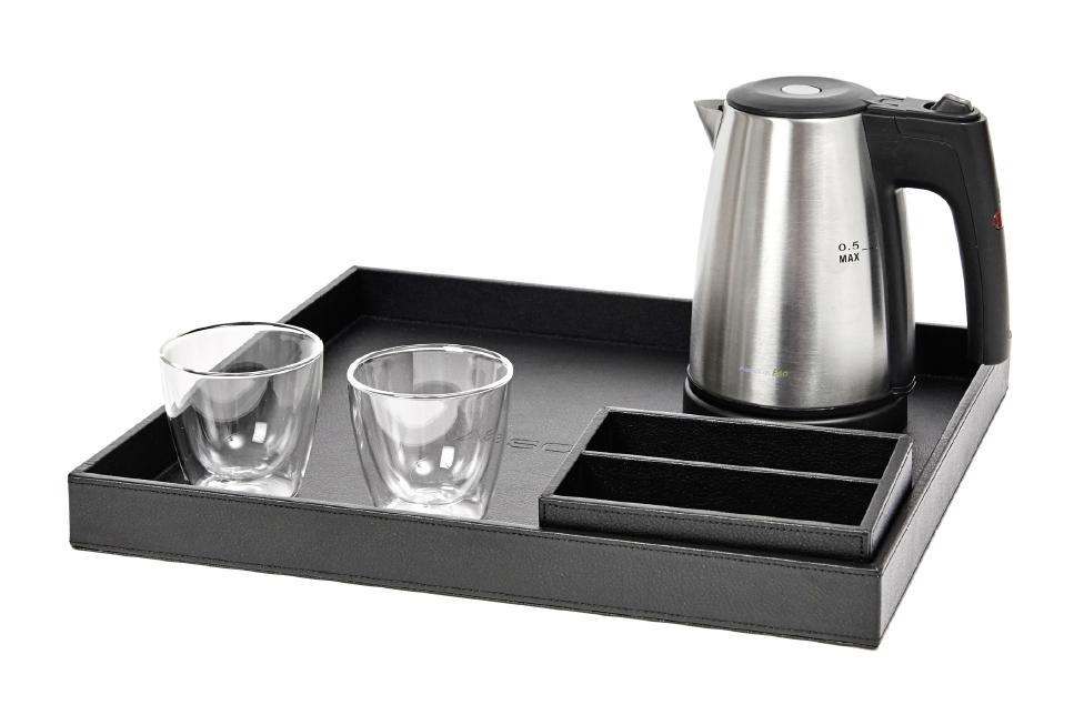 Ascolia les ofrece distintas combinaciones de bandejas de acogida, con hervidores y pequeños accesorios Estamos a su disposición para combinar el conjunto más adecuado para la acogida de sus clientes Consúltenos
