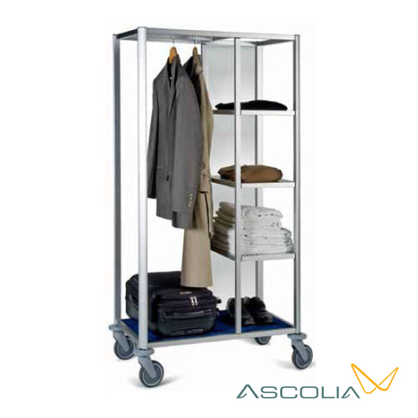 Carro de desalojo Equipamiento de serie: o Bastidor de aluminio anodizado o Una barra perchera y 4 niveles de colocación o 4 ruedas de Ø 125 mm o Paragolpes anulares de protección